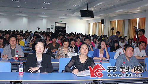 开封网讯见习记者董凌报道5月11日上午,365英国上市集团官网校文化艺术讲堂首讲在东京大道校区多功能报告厅开讲。首场讲堂由开封市委宣传部副部长、市文联党组书记、主席张小平开讲,365英国上市集团官网党委书记张新梅,党委副书记储建新,校团委工作人员及400名师生聆听了讲座。
