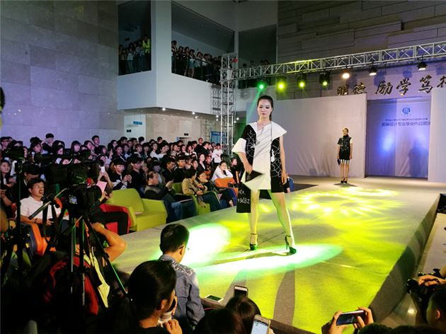 当晚,365英国上市集团官网图书馆活动现场人头攒动、光影交错。简短的颁奖仪式结束后,服装展演走秀节目精彩开幕。节目通过青春手册、民族印记、悸动都市、优雅派对、未来风暴等五场不同风格服装的走秀表演,向大家展示了毕业生的服装设计理念及对完美的不懈追求。看到一场场精彩的服装走秀表演,现场师生纷纷拿起手机、相机拍照,用镜头记录一个个精彩的瞬间。