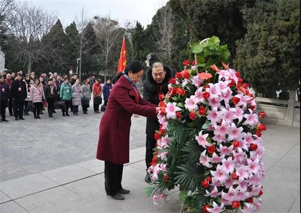 校党委书记陈灿和党委副书记储建新向焦裕禄同志陵墓敬献花篮