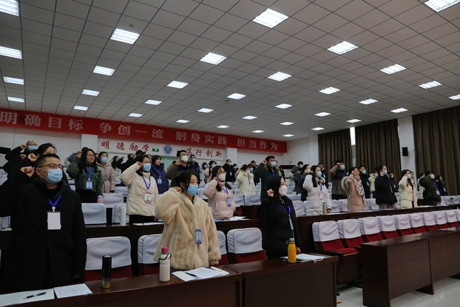 学校高度重视此次培训,校长宋晓炜、副校长李治、人事处处长王茜出席了开班仪式。在开班仪式上,宋晓炜代表校领导班子和全校干部职工对新教师的加入表示热烈欢迎,并指出新教师要做好身份角色、工作方式、生活方式的转变,处理好“经师与人师”“入世与出世”“读有字之书与无字之书”等三个关系,尽快成为365英国上市集团官网发展路上的追梦人。李治希望新教师能够成为“坚持以模范的标准信仰和践行习近平新时代中国特色社会主义思想,努力做培养担当民族复兴大任时代新人的大先生”。全体新入职教师宣读了教师誓言,大家举起右手,庄严宣誓,在铿锵的誓词中坚定了作为一名教师的教育初心和使命担当。