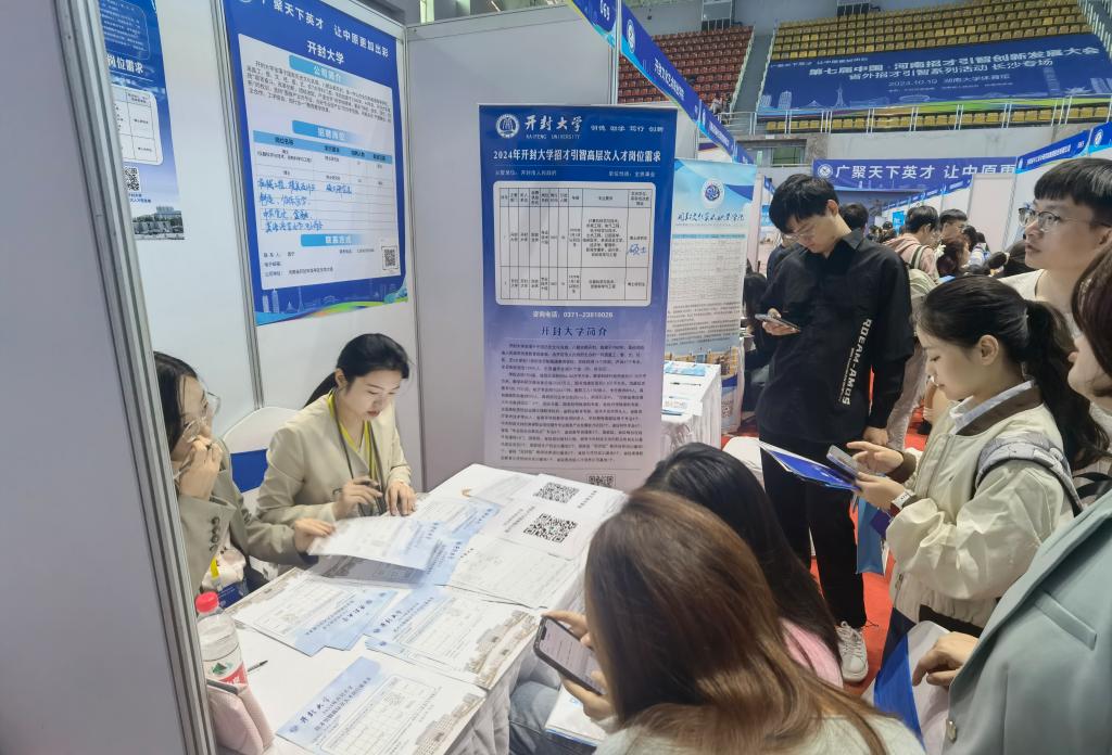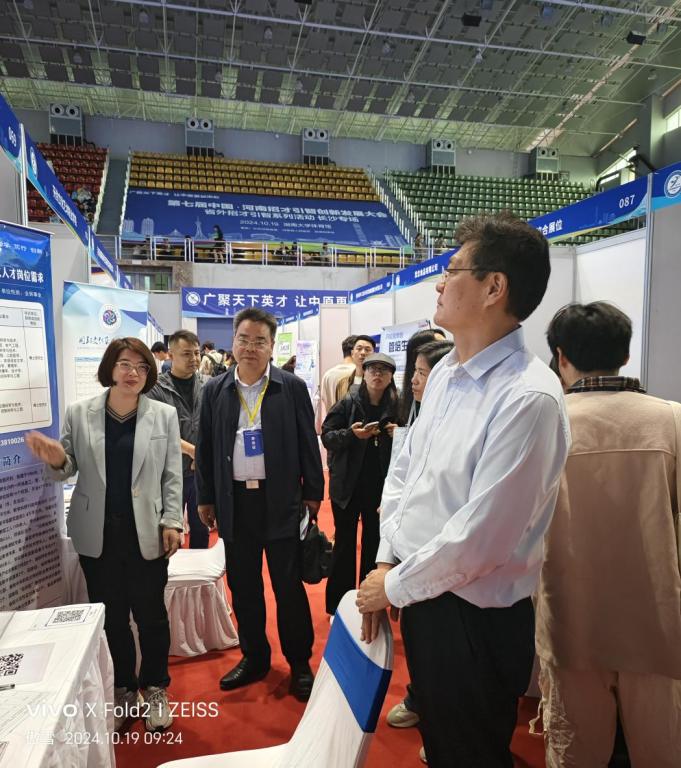 10月19日,第七届中国•河南招才引智创新发展大会长沙专场招聘活动在湖南大学启动。开封市人力资源和社会保障局党组书记、局长薛兆武,局党组成员、副局长江静亚等参加启动仪式。校人事处处长吴文静和人事处工作人员参加了现场招聘活动。