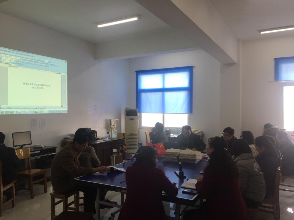 2月23日下午,思想政治理论教研部,认真落实学校新学期工作会议精神,组织全体教师在15号楼210室集体学习“两个行动计划”活动。