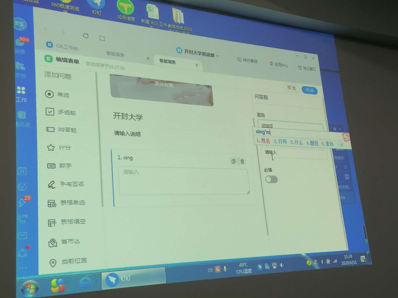 陈友东副主任先向所有老师传达了学校期末考试工作安排和要求,然后向所有教师展示了钉钉和智慧树两个平台出题考试的方式方法和注意事项。