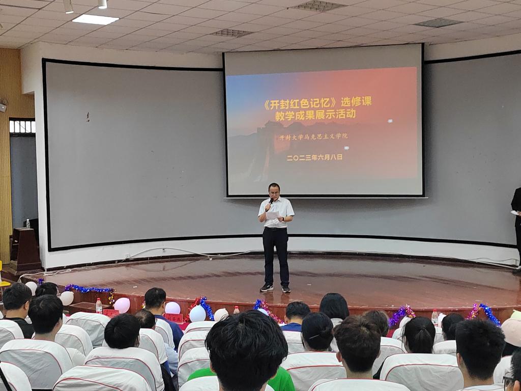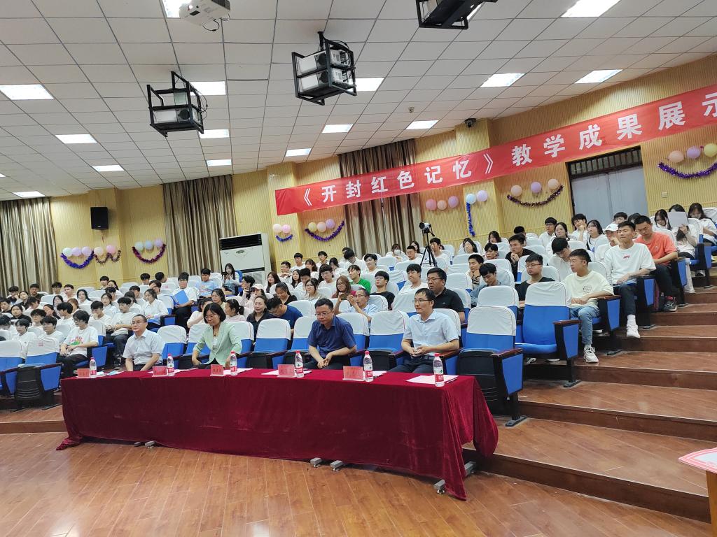 为深入学习贯彻党的二十大精神,进一步丰富思政课教学形式,6月8日晚,马克思主义学院在5号楼报告厅举行思政课选修课《开封红色记忆》教学成果展。校学工部部长付喆、校团委书记刘圣亚、党委宣传部副部长武志远、马克思主义学院党总支书记郝喜才、副院长左慧琴和课程任课教师参加成果展示活动。