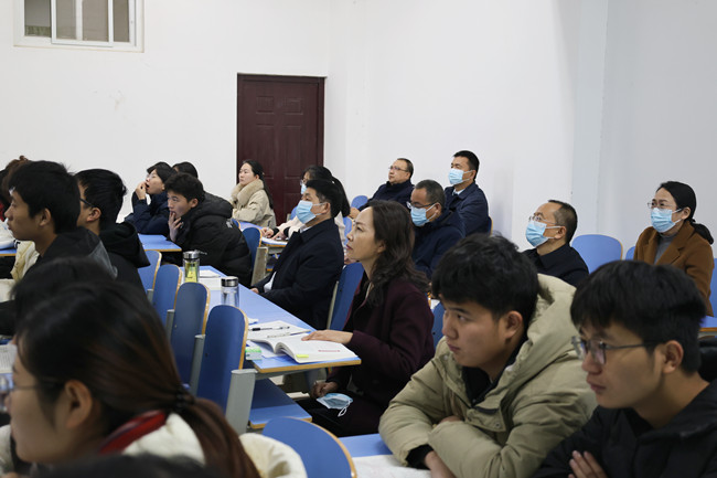 12月1日上午,校党委书记谭贞、校长王德如、副校长李治走进15号教学楼219教室听取了思政课教师郭金龙博士讲授的《毛泽东思想和中国特色社会主义理论体系概论》课程,了解思政课教学实效和学生课堂状态。党政办公室、党委宣传部、马克思主义学院、国际教育学院等部门负责人一同参与听课。