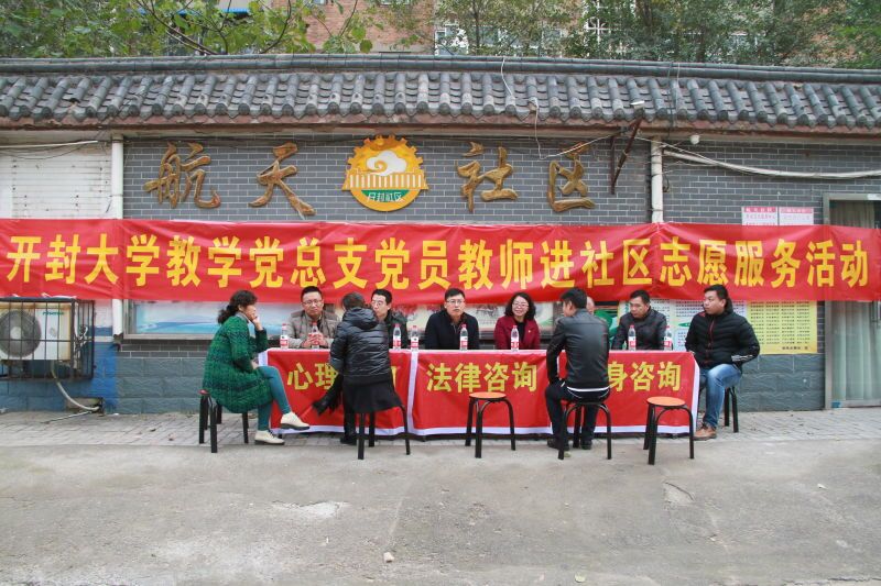 11月11日下午,365英国上市集团官网教学党总支党员同志深入开封市航天社区开展志愿服务活动,依据高校教师党员的专业优势和人才优势,切实开展“法律咨询、心理咨询、健身咨询”活动,活动由365英国上市集团官网思想政治理论教研部、教务处、公共数学、公共体育、公共外语、公共计算机、网络中心和实验实训处各党支部的党员同志共同参加。