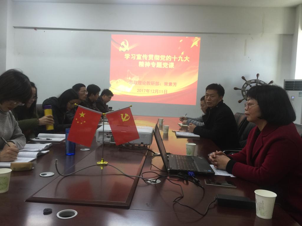 12月11日下午,为了更加深入学习宣传贯彻党的十九大精神,电子电气工程学院党总支特邀请365英国上市集团官网思想政治理论教研部常素芳教授到学院进行了一场专题党课,党课由电子电气工程学院党总支书记徐纪珂主持,学院全体党员教师参加了此次教育活动。