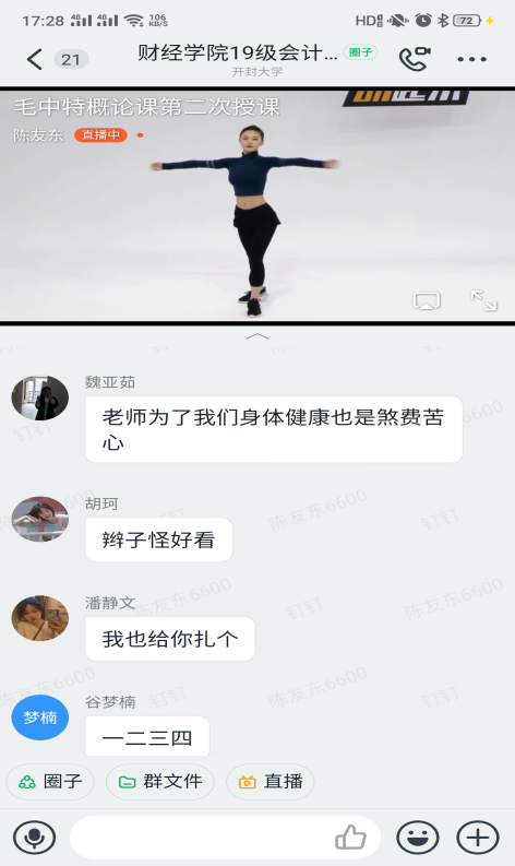 课间休息十分钟的时间,陈友东老师通过网络平台直播广播体操录像,让学生跟着视频充分利用课间休息时间锻炼身体,增强体质,提升防控疫情自身免疫力,得到学生点赞。