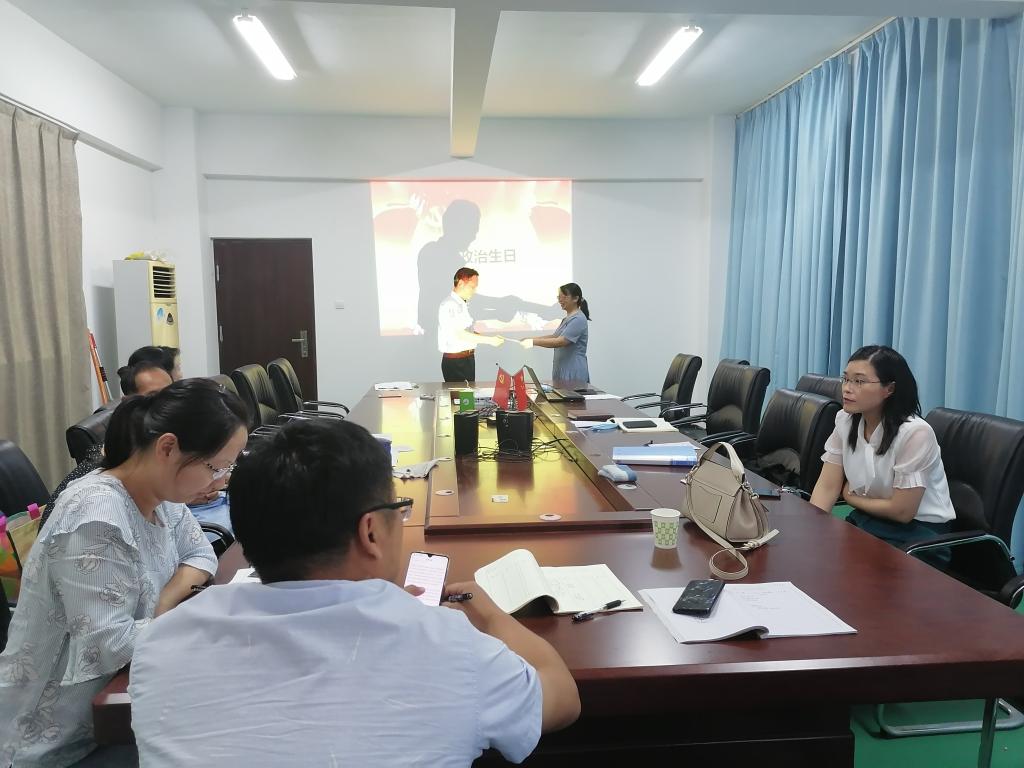 会上,思政部主任常素芳向大家汇报了近期学校的党建工作。接着,按照汴组【2018】16号文的精神,召开了6月份的5+N主题党日活动。首先,全体党员面向党旗,由领誓人常素芳书记带领大家进行宣誓。接着,诵读经典。艾政文老师带领大家学习了两会精神,党员教师交纳党费,给6月份过政治生日的卢慧勇老师过政治生日。最后党员教师苏会君向大家讲解了开封市博物馆新馆的相关知识。