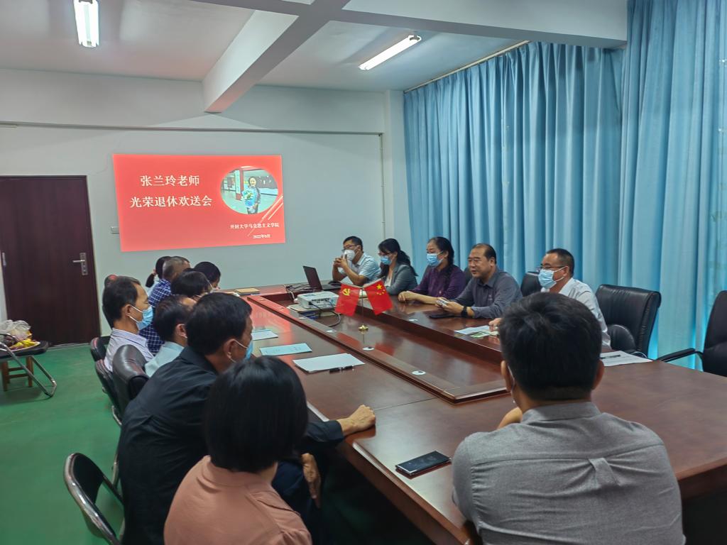 欢送仪式上,张兰玲发表退休感言,回顾了工作生活中难忘的点点滴滴,分享了教书育人事业中的感悟,表达了对马克思主义学院大家庭的眷念和祝福。