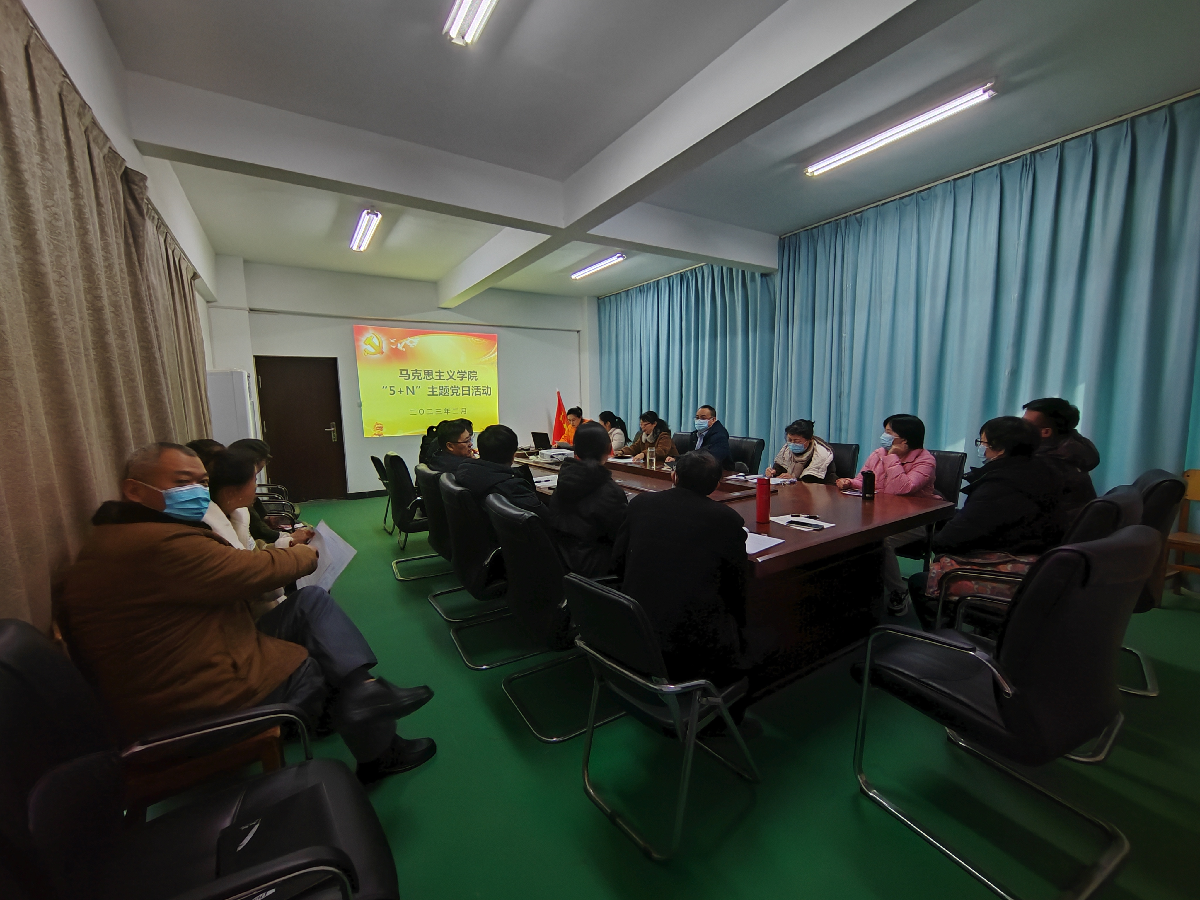 217日下午,马克思主义学院教工党支部2#418会议室开展以持续深入学习二十大精神,深刻理解中国式现代化”为主题的“5+N”党日活动,全体党员教师参加会议。会议由教工党支部书记郝喜才同志主持。