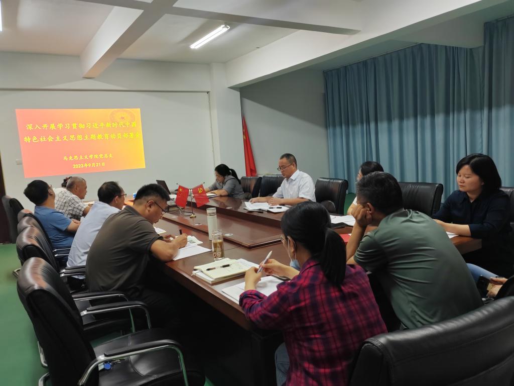 9月21日下午,我院在2号楼418会议室召开学习贯彻习近平新时代中国特色社会主义思想主题教育动员会,学院领导班子及全体党员教师参加了会议。会议由党总支书记郝喜才主持。