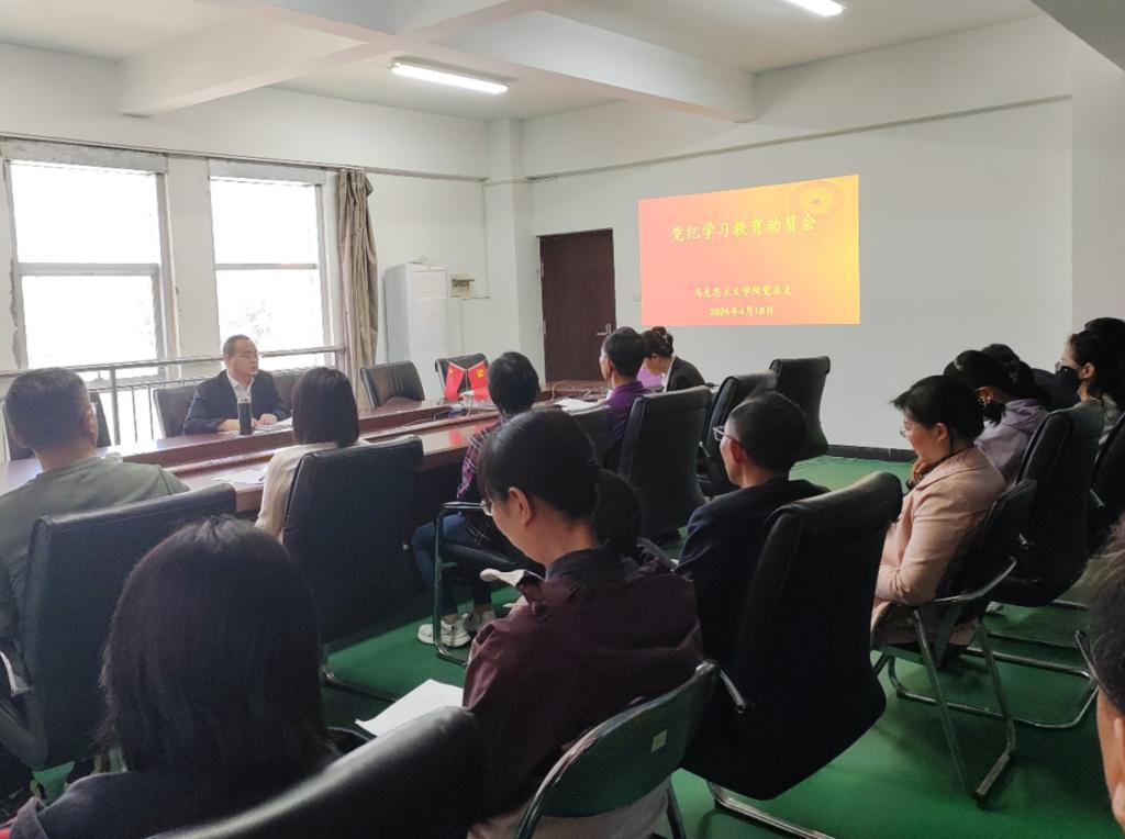 为深入推进党纪学习教育走深走实,4月18日,学院在行政楼418会议室召开党纪学习教育动员会,全体党员教师参加会议,会议由党总支书记郝喜才主持。