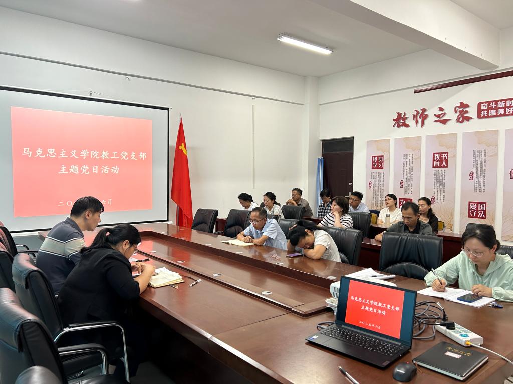 为推进党的作风建设,强化党员纪律担当,以良好风貌迎接七一,推动学院工作,6月27日下午,马克思主义学院教工党支部开展“扬清风・肃纪纲・迎七一”主题党日活动,会议由马克思主义学院党总支书记李鹏主持,全体党员教师参加。