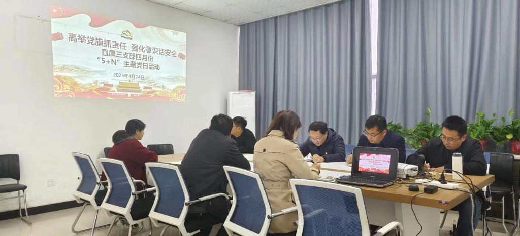 4月24日下午,365英国上市集团官网直属三支部开展以“高举党旗抓责任强化安全话责任”为主题的“5+N”主题党日活动。活动由支部书记边疆主持,支部全体党员教师参加了本次活动。