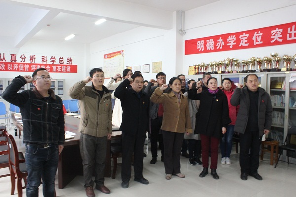 首先,赵书锋同志主持领誓,大家面对鲜红党旗,庄严宣誓,重温入党誓词。院教工党支部宣传委员尉桂芬老师带领大家诵读了习近平总书记在全国教育大会上的讲话选段。随后,教工党支部书记为三月份过政治生日的教师送上了生日祝福和寄语。全体党员教师依次交纳了当月的党费,到院办公楼周围进行义务劳动。最后,陈书记以一名普通党员的身份谈自己的认识和感受,她指出,一是要加强自我学习,发挥党员模范作用,做到为人师表,教书育人,不能忘本,在学生面前站得直,行得端。二是要牢记共产党员的责任使命,全心全意为人民服务。三是要结合工作实际,发挥共产党员的模范带头作用,用自己的实际行动感染人,带动人。