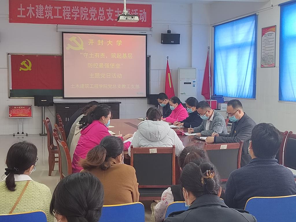 为认真落实学校党委疫情防控工作要求,充分发挥基层党组织战斗堡垒作用和党员先锋模范作用,4月14日下午,土木建筑工程学院教工党支部组织全体教师党员召开“守土有责,筑起基层防控最强堡垒”主题党日活动,校党委书记陈灿同志以一名普通党员身份参加了此次党日活动,本次主题党日活动由教工支部书记赵书锋主持。