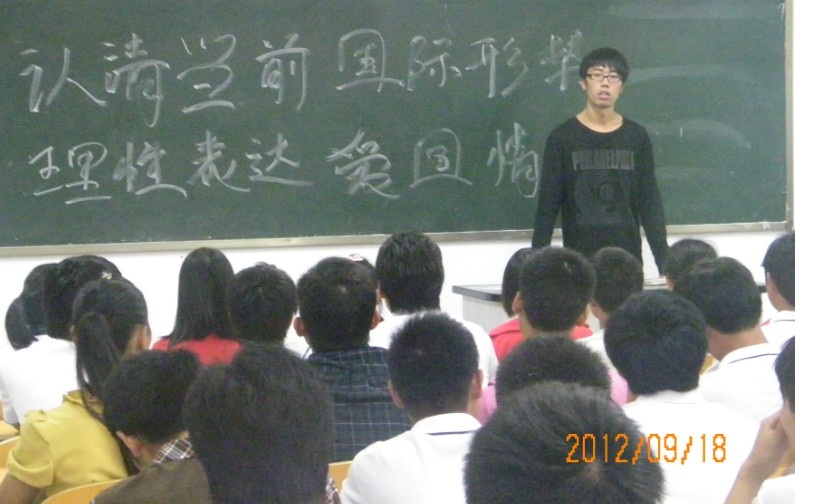 九月十八日晚,土木建筑学院全体班级在教室召开“认清形势 维护稳定 依法理性表达爱国热情”主题团会。