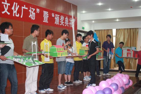 此次周末文化广场有两个主题:一是对团总支举办第五届建筑模型设计大赛作品的现场评比;另一是对土木学院今年以来,学生在各种比赛中,尤其是在省图形大赛和三校联合力学结构制作大赛获奖同学的表彰。