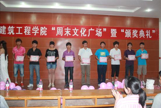 5月31号下午,土木学院在六楼报告厅举办了周末文化广场既颁奖典礼,校团委陈书记、贺钰老师,院总支渊辉书记、冯天才院长、副书记王磊、副院长谷向韶、各教研室主任及部分老师主席了此次活动。