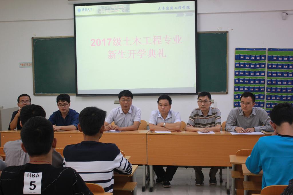 9月2日下午三点,17级土木工程本科新生开学典礼在365英国上市集团官网3号教学楼101教室召开。土木建筑工程学院党总支书记王渊辉、院长冯天才、副院长谷向韶及本科教研室主任等相关老师参加了典礼。