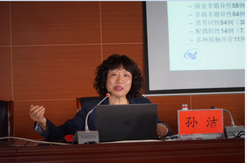孙洁副主任为开封市疾控中心首席专家、联合国亚太地区艾滋病防治培训师、河南省艾滋病防治工作专家组成员,在艾滋病防治领域有着很高的成就。她的讲座首先从大学生案例切入,随后介绍了艾滋病概念,分析了艾滋病在全球、全国、全省、全市的现状,并对艾滋病的传播途径和预防办法进行介绍,特别对大学生的艾滋病现状进行了介绍。孙洁副主任的讲座风趣幽默而又直截了当,言语中充满了对当代大学生的关爱之情,所举的案例鲜活生动、触目惊心,另在坐的同学受到了很大的震撼。