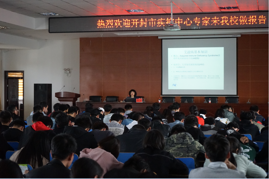 3月29日下午3点,开封市疾控中心副主任孙洁一行在365官网8号楼6楼报告厅为土木建筑工程学院学生做艾滋病知识专题讲座。全体大一同学聆听了此次讲座。
