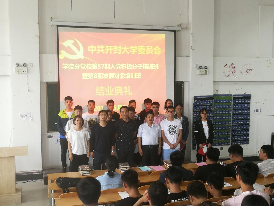 2018年5月24日下午,土木建筑工程学院分党校在17号楼408举办了第57期积极分子、第8期发展对象党课培训班结业典礼暨党章抄写表彰大会。出席本次活动的有土木建筑工程学院党总支书记王渊辉,党总支副书记成诤磊,团总支书记武志远,学生一支部书记刘封,组织委员周宁以及党课培训班的全体学员。
