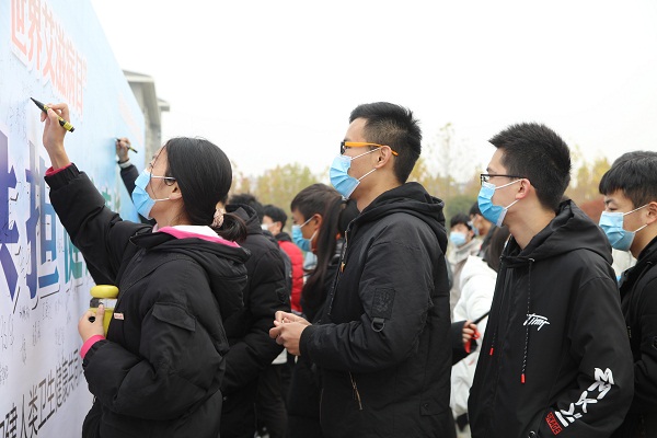 为进一步落实《“健康中国2030”规划纲要》《国务院关于实施健康中国行动的意见》《遏制艾滋病传播实施方案(2019-2022年)》《教育部办公厅国家卫生健康委办公厅关于切实加强新时代学校预防艾滋病教育工作的通知》有关要求,不断推进“师生健康中国健康”主题健康教育,进一步加强新时代学校预防艾滋病教育工作并形成常态、形成机制、形成氛围,促进青年学生身心健康,土木建筑工程学院于12月3日下午在大观广场举行“世界艾滋病日”宣传活动启动仪式。校工会主席成芳、学工部部长孙勇、校团委副书记李卓珊、土木建筑工程学院领导班子及全院师生千余人出席了此次活动。