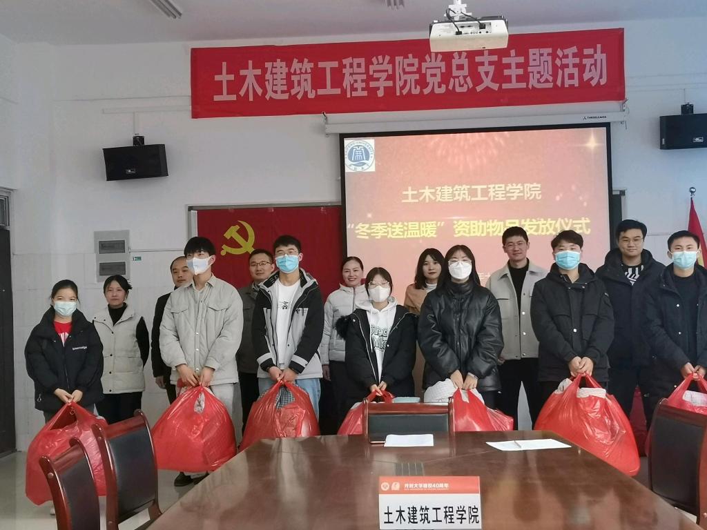与会的学院领导及辅导员为家庭经济困难学生发放了棉被和床品三件套等过冬物品,为同学们带来了学校及学院的温暖关爱。李书记从生活、工作等方面分享自身经历,并对受助学生提出了几点期望:一是要懂得感恩。感恩国家的扶贫资助政策,感恩学校领导和老师的殷切关怀,感恩所有支持和帮助我们的人;二是直面困难,学会在逆境中奋起,面对挫折和困难时,做到不逃避、不回避,从不同角度看待挫折,把挫折的磨砺化作前行的动力,在解决困难的过程中提高自己的处事能力;三是要刻苦学习,努力成才,以优异的成绩回报学校和社会。