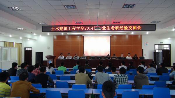 为了营造学院浓厚的考研氛围,建设良好的学习风气,5月10上午,土木建筑工程学院在土木建筑工程学院楼六楼报告厅举行了考研经验交流会。学院党总支书记王渊辉、院长冯天才、党总支副书记王磊出席了此次交流会。会议由副书记王磊主持,部分学院老师和参加今年硕士研究生入学考试并被录取的2010级14位本科班和3位专科班同学作为交流嘉宾参加了交流会,参会的学生还有其余三个年级的本科班的学生和部分已参加自考且拟考研深造的专科学生。