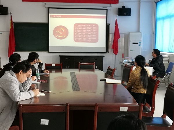 会上,党总支书记李春霞,副书记武志远,教师张霞,教师郭金龙四位教师分别就《端正入党动机,争取做一名合格共产党员》、《党员的条件》、《党的纪律》、《中国共产党的性质》这四个专题的讲授要点、教学方法、如何提高党课质量等进行了说课,并积极分享教学经验,现场气氛热烈、讨论充分,起到了很好的备课交流效果。