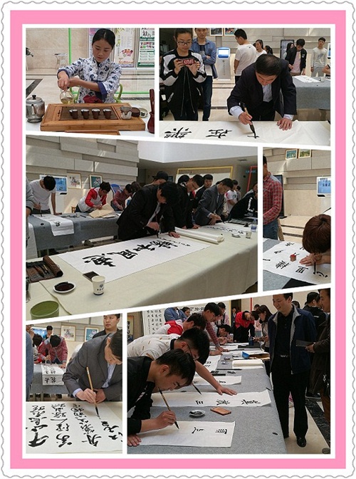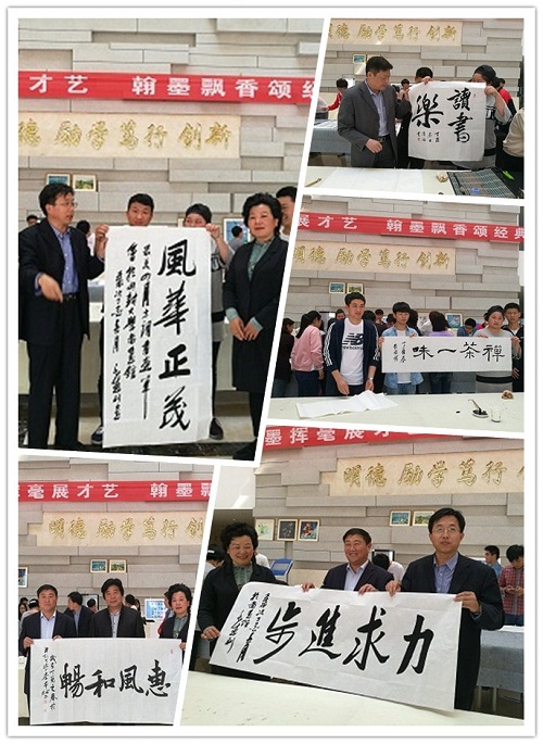 4月27日下午,图书馆联合校工会书法协会、读书会和书画联合会在二楼大厅举办了古诗词书画现场笔会,中国书法家协会会员李本松、毛成利等老师参加笔会,副校长曾小平出席活动,活动由图书馆馆长孙伟主持。