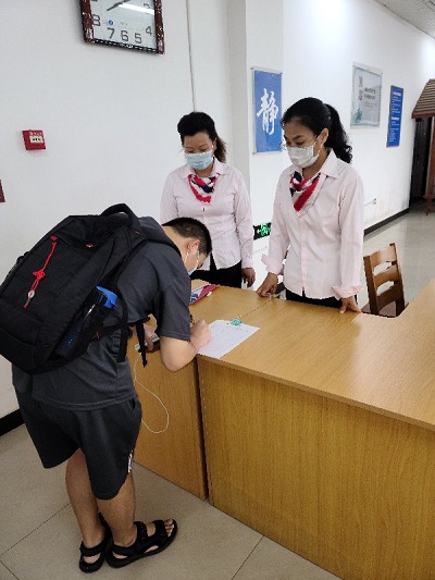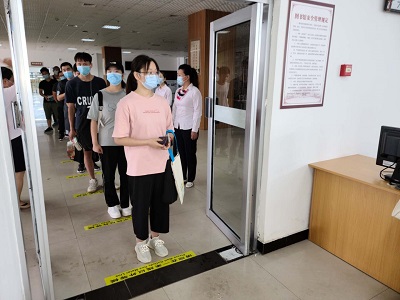 8月31日是新学期开学第一天,闭馆近八个月的图书馆重新开放。早上7点30分,距离开馆还有半个小时,二楼入口处已经有几名佩戴着口罩的读者在排队等候。