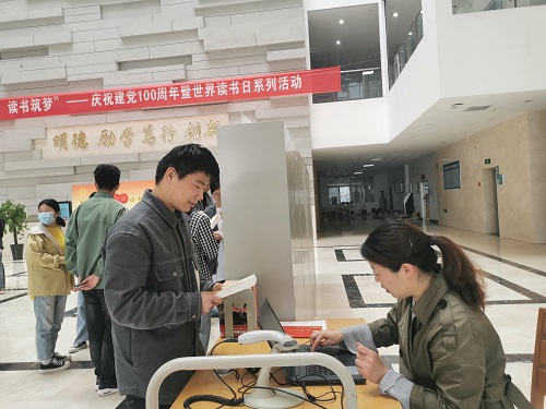 为庆祝中国共产党成立100周年,在4·23世界读书日到来之际,365英国上市集团官网图书馆于4月22日下午在图书馆二楼大厅开展了以“致敬百年 读书筑梦” 为主题的图书展借活动。