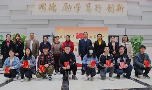 图书馆馆长孙伟宣读了活动方案。本次阅读推广活动采用线上和线下两种方式,并将举办“庆祝中国共产党成立100周年主题书展”和“中国知网数据库利用培训”等共七项活动。图书馆副馆长徐建萍宣读了对图书馆“优秀学生管理员”和“读者之星”的表彰决定,与会领导和老师为获奖学生颁奖。