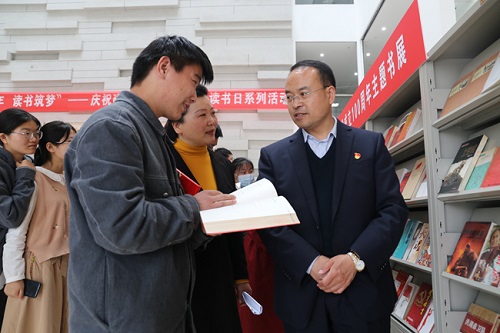 在庆祝建党100周年和第26个“世界读书日”到来之际,为使广大师生感悟党的百年历史,提升学史明理、学史增信、学史崇德、学史力行的能力,切实做到学党史、悟思想、办实事、开新局,4月22日下午,由365官网党委宣传部、图书馆和思想政治理论教研部联合主办的“致敬百年 读书筑梦”2021年阅读推广启动仪式在图书馆二楼大厅顺利举行。校党委委员、卫校校长谢文忠出席仪式,党委宣传部、图书馆和思想政治理论教研部负责人和相关工作人员,外国语学院党总支书记和信息工程学院、医学部辅导员及200余名学生参加了仪式,仪式由图书馆党支部书记、副馆长孙浦辰主持。