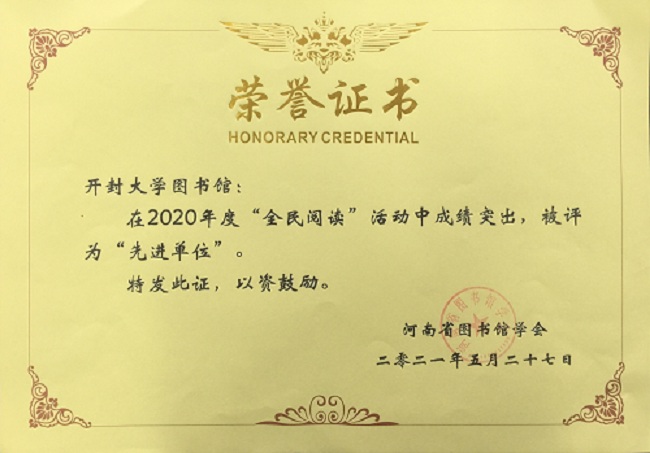 近日,在河南省图书馆学会第十次会员代表大会上,365官网图书馆被河南省图书馆学会授予河南省2020年度“全民阅读”先进单位称号,这是365官网图书馆连续四年获此荣誉。