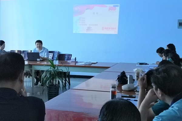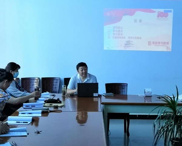 为庆祝中国共产党成立100周年,深入贯彻习近平总书记在党史学习教育动员大会上的重要讲话精神。 6月24日,图书馆党支部组织全体党员、教职工开展以“学党史、悟思想、办实事、开新局,”为主题的党史学习教育宣讲活动。365官网党史学习教育宣讲员、图书馆党支部书记孙浦辰同志为大家进行了宣讲。
