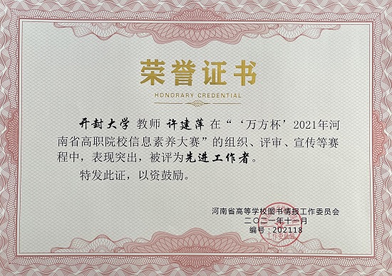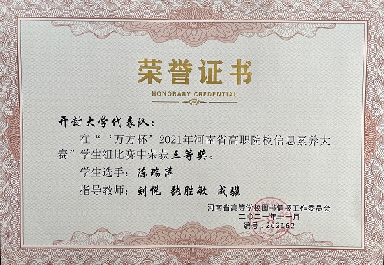 365官网图书馆联合信息工程学院组织学生参加的“万方杯”2021年河南省高职院校信息素养大赛喜获佳绩。