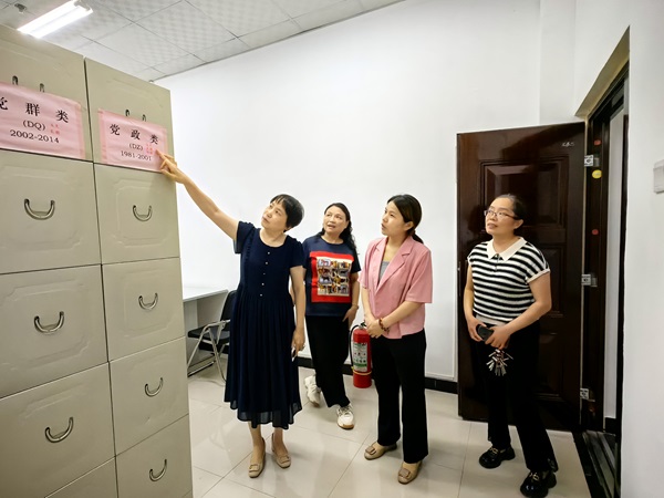 成芳先后深入档案馆查阅利用室、档案收集指导室、档案加工室以及档案库房等实地查看,并同档案馆工作人员亲切交流,了解当前档案工作开展实际、馆藏情况和存在问题。档案馆档案研究馆员徐莹、副馆长肖楠分别汇报了档案馆日常运行、档案查档利用等方面的工作。
