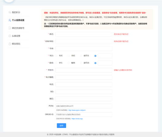 4、 下图,如实完善个人信息,点击 “保存”即可使用浏览知网相关文献: