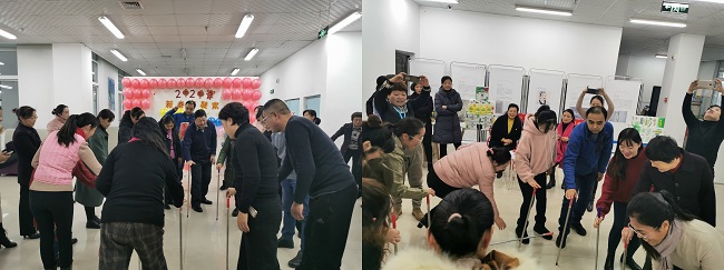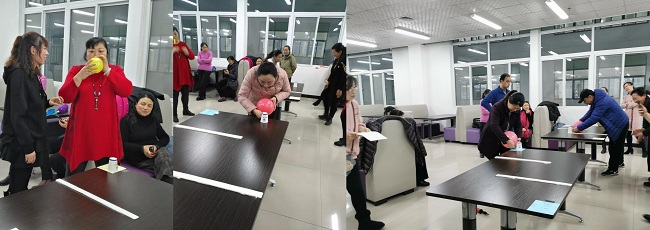 趣味联欢活动中,馆员老师们兴趣盎然地参与了 “屹立不倒”、“公鸡下蛋”、“气球吹纸杯”及扎气球答题赢大奖等多个精心设计的活动项目。集游艺与业务知识为一体的活动项目,让每一位老师在有趣的活动中增进了业务能力,同时又在游戏中放松自我找到欢乐。活动现场充满了浓浓的节日氛围,老师们徜徉在欢乐的海洋,脸上写满了兴奋与激动。