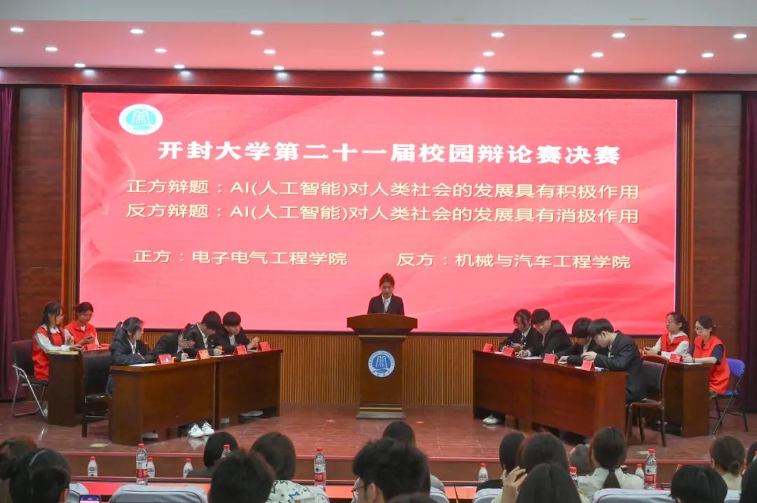 决赛在电子电气工程学院代表队和机械与汽车工程学院代表队之间展开,正反方以“AI(人工智能)对人类社会发展的作用”为辩题展开激烈交锋。现场气氛热烈,参赛选手们旁征博引,妙语连珠,通过开篇立论,攻辩小结,自由辩论和总结陈词四个环节进行精彩辩论,尽展思辨风采。