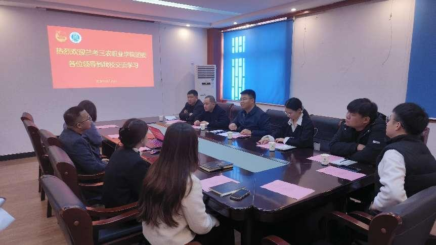 刘圣亚首先对兰考三农职业学院团委的到访表示欢迎,并简要介绍了365官网共青团工作开展情况。闫俊介绍了创新创业学院的教育特色、亮点工作、竞赛情况。