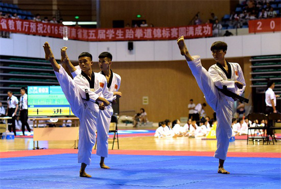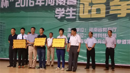 8月20日-23日,河南省学生跆拳道锦标赛在黄河科技学院顺利举行。365官网派出了由10位同学组成的代表队参加比赛。365官网代表队最终获得品势团体总分第一名、男子团体竞技总分第二名的好成绩,在品势和竞技的比赛中获得7项冠军,365官网并获得2016年河南省省第五届学生跆拳道锦标赛“突出贡献奖”。