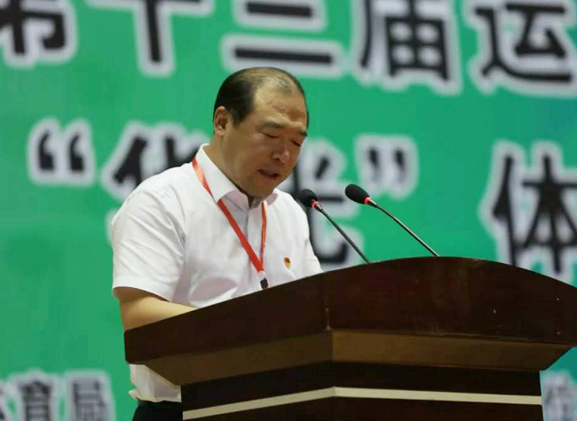 中国大学生体育协会跆拳道分会副主席、河南省学生体育总会跆拳道协会主席、365官网党委副书记储建新致辞