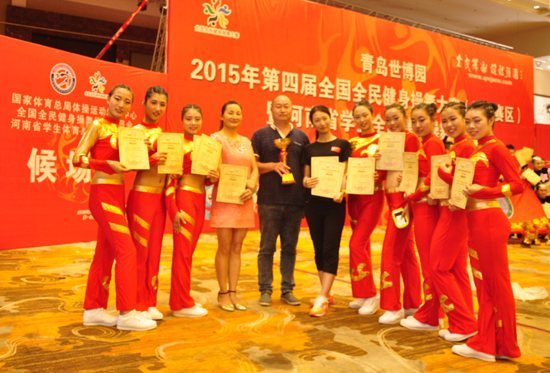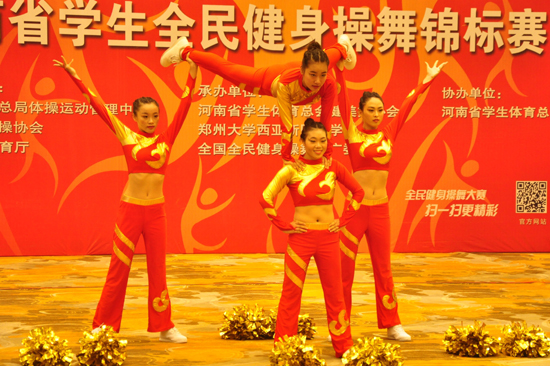 本站讯 8月10日至13日,2015第四届全国全民健身操舞大赛(河南赛区)暨河南省学生全民健身操舞锦标赛在郑州西亚斯国际学院举行,来自全省本专科的38个代表队共714名选手参加了此次比赛。