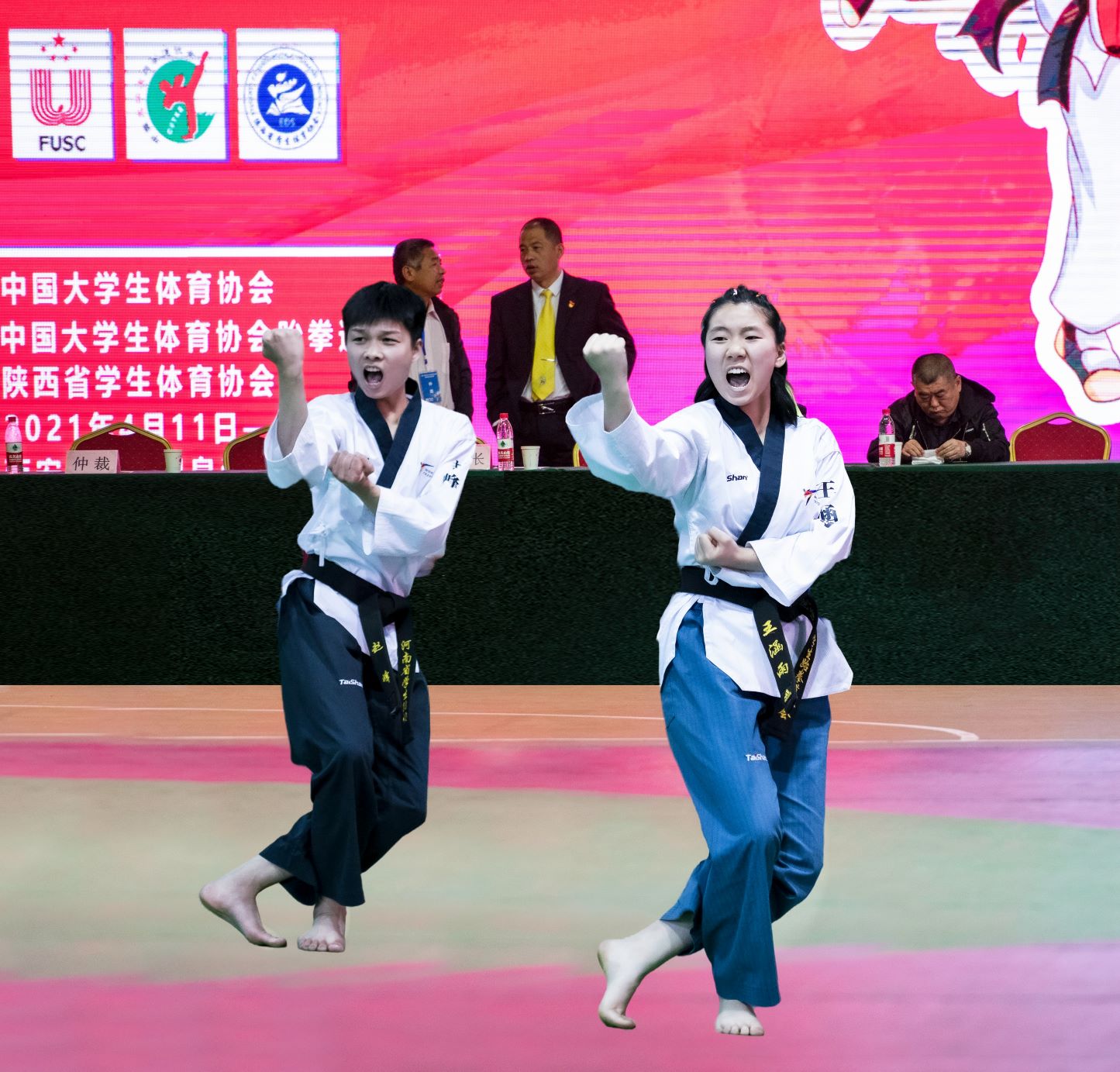 2021年4月13日至16日,第31届世界大学生夏季运动会跆拳道项目选拔赛在西安举行。365官网派出3名运动员参赛,经过激烈的角逐,365英国上市集团官网医学部医学影像技术专业王涵雨、电子电气工程学院物联网应用技术专业赵峰等同学获混双品势第四名,国际教育学院国际金融专业常珂鸣获男子个人品势第五名。这是365官网迄今为止参加的最高级别的体育竞赛。