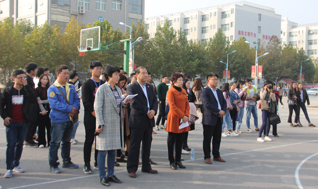 本站讯 10月26日下午,由校团委、体育教研部联合主办的“走下网络、走出宿舍、走向操场”2017级新生运动会在校篮球场隆重开幕。校党委副书记储建新、工会主席成芳出席了开幕式,党委宣传部、学工部、体育教研部、后勤服务中心负责人和各院部篮球赛代表队参加了开幕式,开幕式由校团委副书记杨艳丽主持。